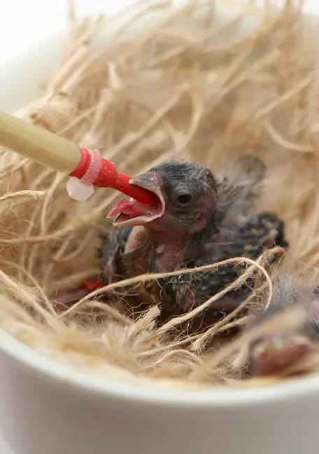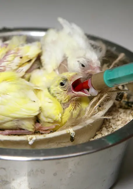 Hand-feeding with a soft tube is the safest and cleanest way to feed hand-feeding formula.